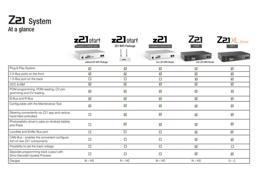 Les différences entre la Z21 start et les version Z21 start avec wifi et z21 blanche :